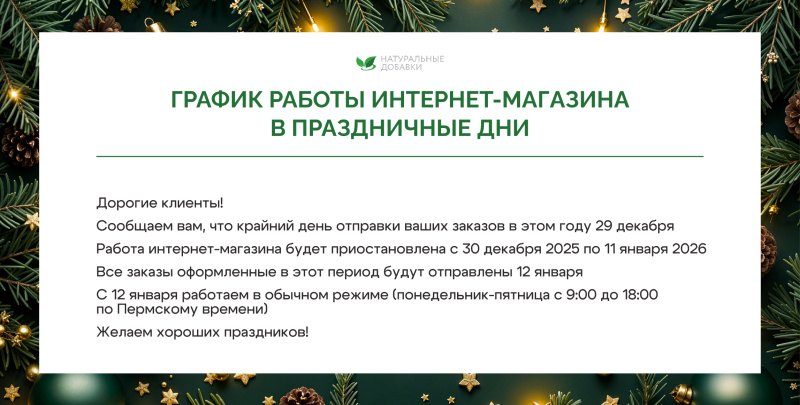 29 декабря 2025 — крайний день отправки заказов в этом году! Все, что оформлено до 8:00 (по пермскому времени), будет отправлено
