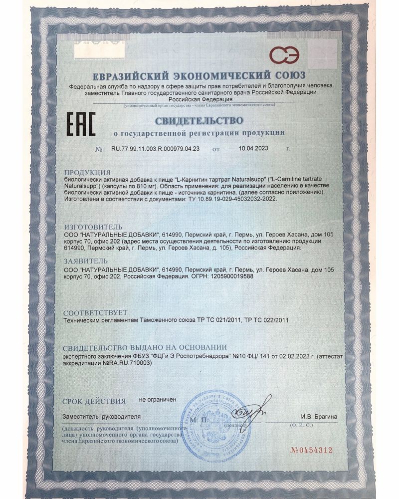 Карнитин участвует в регенерации клеток, имеет антиоксидантные, антигипоксические, анаболические свойства. Добавка способствует снижению веса. Включение карнитина в диету способствует предотвращению образования метаболитов жирных кислот, снижению уровня общего холестерина.
