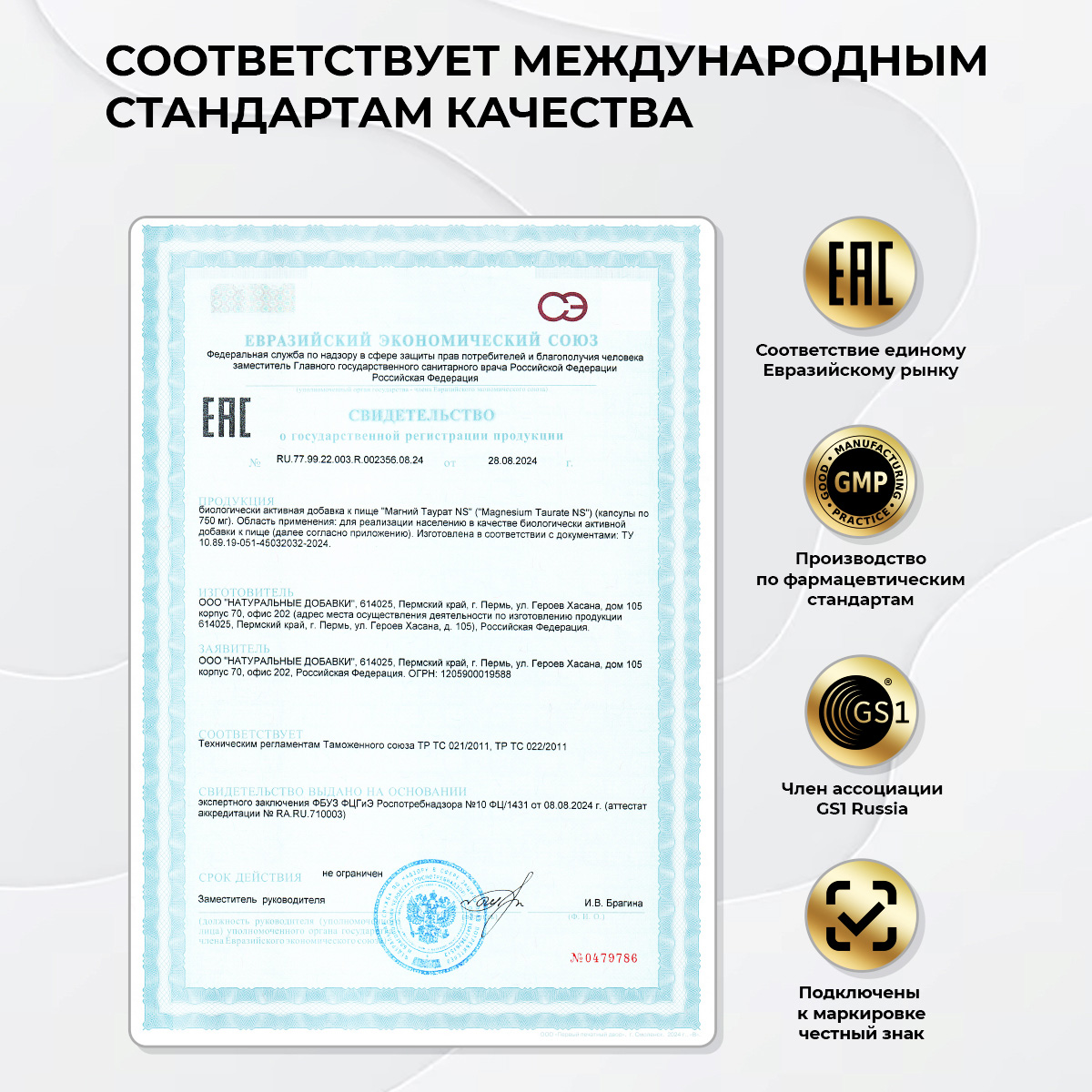 Вывод: Магния таурат является высокоэффективной хелатной формой магния, специально разработанной для поддержки сердечно-сосудистой системы, повышения энергии и укрепления нервной системы. От поддержания здоровья сердца и сосудов до снижения стресса, улучшения метаболизма и повышения устойчивости к физическим нагрузкам — регулярный прием этой добавки обеспечивает комплексную поддержку организма, особенно ценимую активными людьми всех возрастных категорий, стремящимися сохранить высокое качество жизни и оптимальное самочувствие в условиях современного ритма.