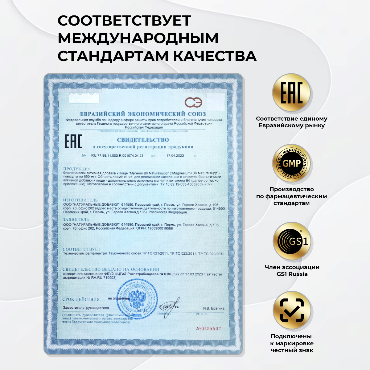 Первые улучшения в качестве сна и уменьшении мышечного напряжения могут быть заметны через 1-2 недели приема. Для устойчивого эффекта в снижении частоты мигреней, улучшении стрессоустойчивости и нормализации нервной системы рекомендуется курсовой прием продолжительностью 1-3 месяца с последующими поддерживающими курсами.
