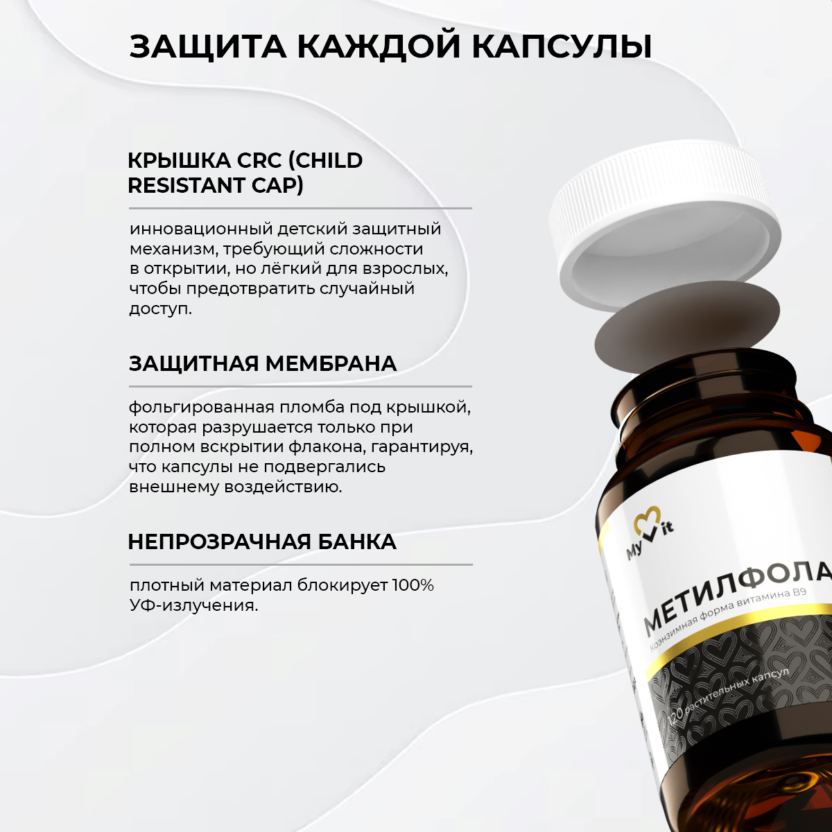 Фолиевая кислота влияет на обмен веществ и помогает разнообразить питание. Метилфолат способствует нормальному делению клеток и поддержке иммунной системы. Добавка помогает восполнить уровень необходимых элементов в рационе.