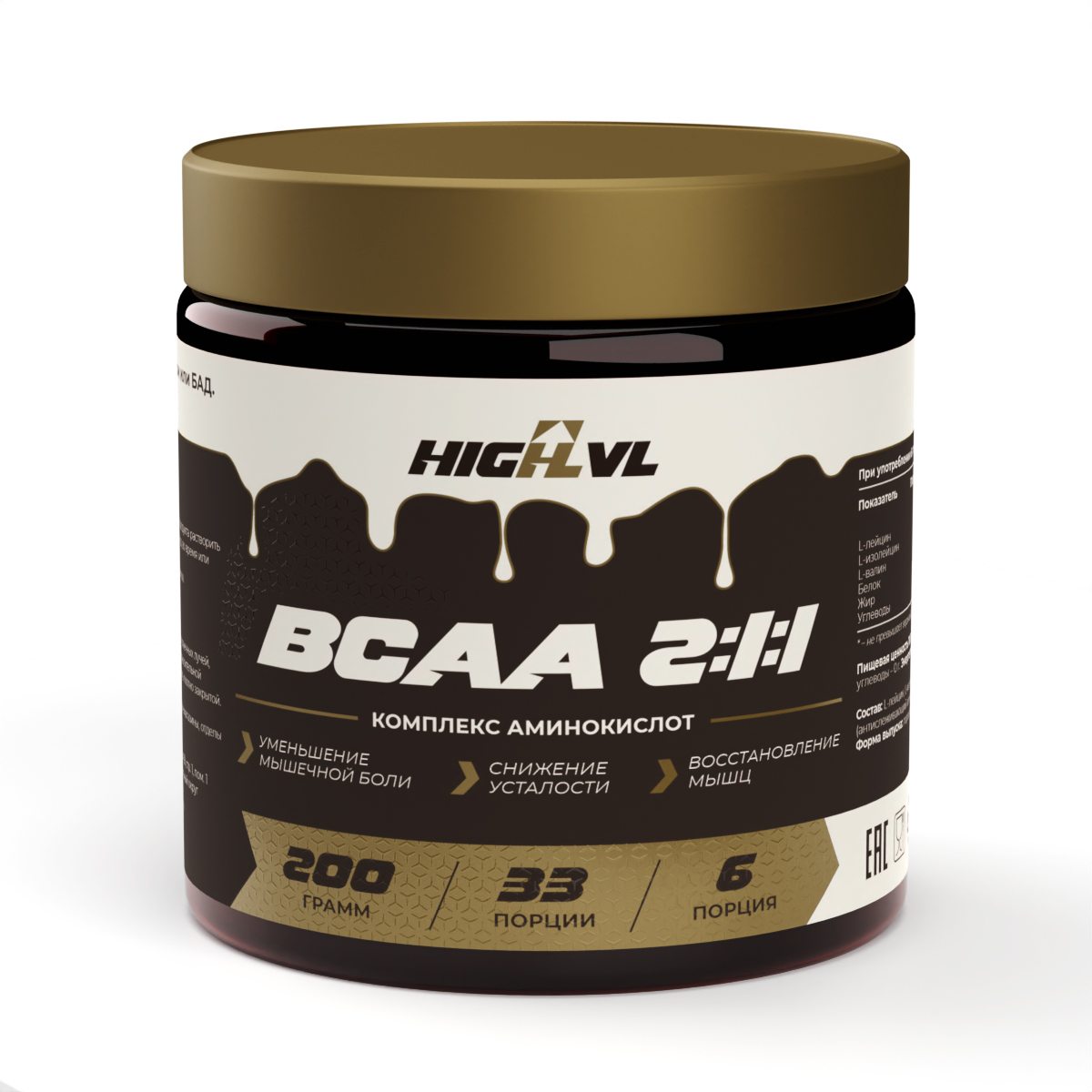 ВСАА 2:1:1 от HIGHLVL – это высококачественный аминокислотный порошок, который поможет вам эффективно восстанавливаться после тренировок и достигать спортивных целей. С оптимальным соотношением L-лейцина, L-изолейцина и L-валина 2:1:1, этот продукт идеально подходит как для набора массы, так и для похудения, поддерживая мышцы при высоких физических нагрузках.