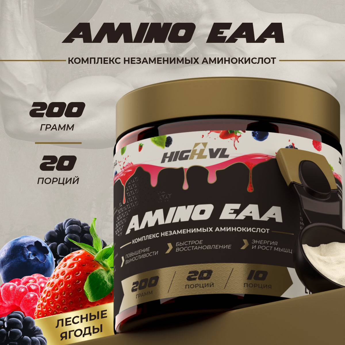 - Восстановление и рост мышц: ЕАА способствуют синтезу белка в тканях, что ускоряет восстановление после тренировки и способствует росту мышечной массы.