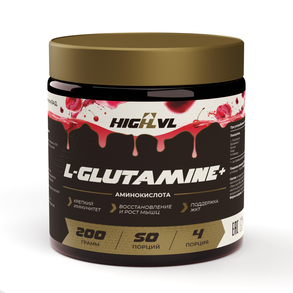 L-GLUTAMINE от бренда HIGHLVL с вишневым вкусом — это премиальное спортивное питание для мужчин и женщин, которое станет отличным помощником в период интенсивных тренировок и активного набора массы. HIGHLVL — это российский бренд спортивного питания премиального уровня. Глютамин играет ключевую роль в поддержании азотного баланса и синтезе белка — основного строительного материала мышечной ткани. Особенно он важен при интенсивных тренировках, когда организм испытывает повышенный стресс и активнее теряет аминокислоты. При регулярном применении, L-GLUTAMINE способствует восстановлению после нагрузок, снижает риск перетренированности и помогает стабилизировать уровень кортизола — гормона стресса, разрушающего мышцы и тормозящего набор массы. Это делает его незаменимым компонентом любого комплексного подхода к спортивному питанию, направленному на набор веса для мужчин и укрепление мышечного потенциала. Этот продукт — выбор тех, кто серьёзно относится к своему телу и результатам. L-GLUTAMINE подходит как новичкам, так и опытным спортсменам, включая бодибилдеров, кроссфит-атлетов, бойцов и всех, кто регулярно сталкивается с высокими физическими нагрузками. Его действие направлено на сохранение мышечной массы в период сушки и активизацию роста при массе-наборных циклах.