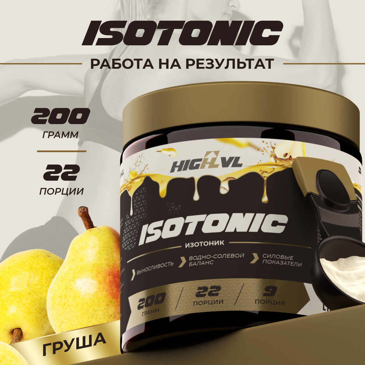 ISOTONIC от HIGHLVL со вкусом груши — это эффективный спортивный порошок для быстрого восполнения электролитов, энергии и витаминов во время и после интенсивных нагрузок. Ключевое действие — восстановление водно-солевого баланса и поддержка организма в условиях повышенной физической активности.