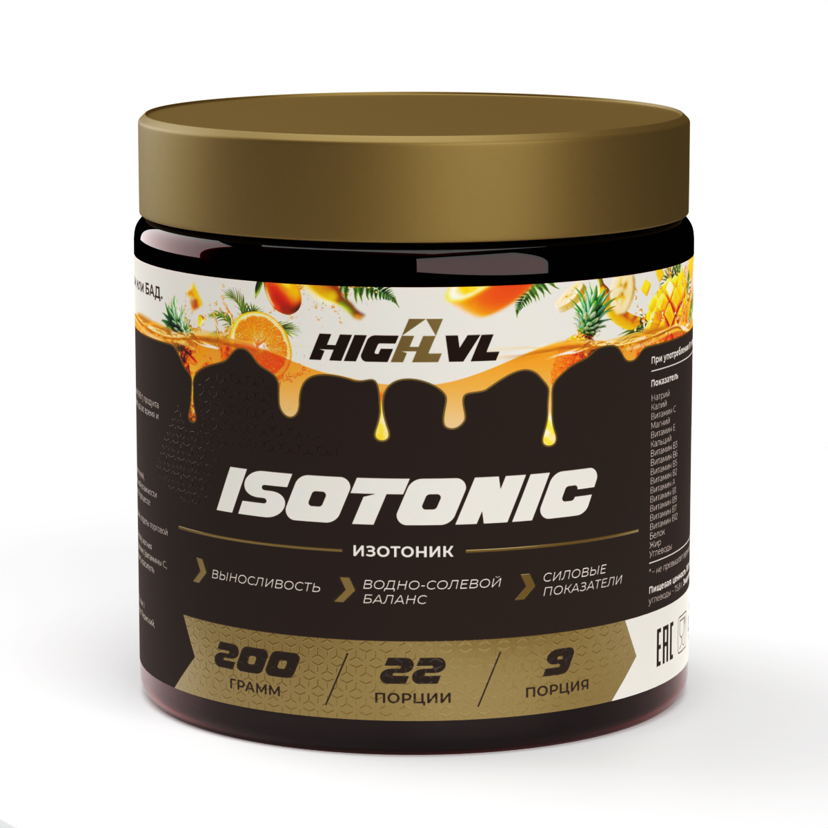 ISOTONIC от HIGHLVL с тропическим вкусом — это эффективный спортивный порошок для быстрого восполнения электролитов, энергии и витаминов во время и после интенсивных нагрузок. Ключевое действие — восстановление водно-солевого баланса и поддержка организма в условиях повышенной физической активности.