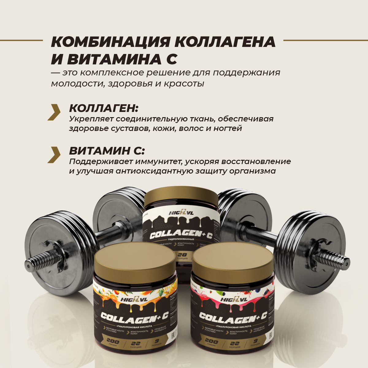 HIGHLVL — российский бренд премиум-класса, который сочетает высокое качество с доступной ценой. Мы используем чистые и научно обоснованные компоненты без лишних добавок и химии. Данная добавка является отличным выбором как для мужчин, так и для женщин, которые хотят поддержать суставы, улучшить состояние кожи и укрепить волосы.