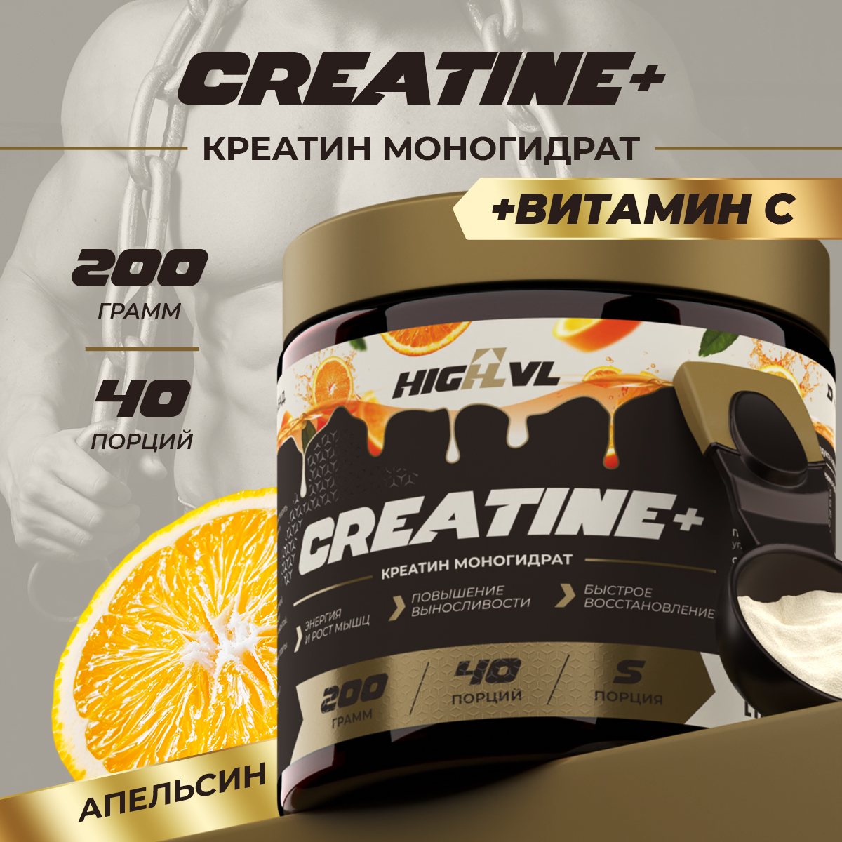 Сочетание креатина с витамином С способствует улучшению метаболизма и усвоения креатина в мышцах, что повышает его эффективность, также способствует более быстрому восстановлению после тренировки.