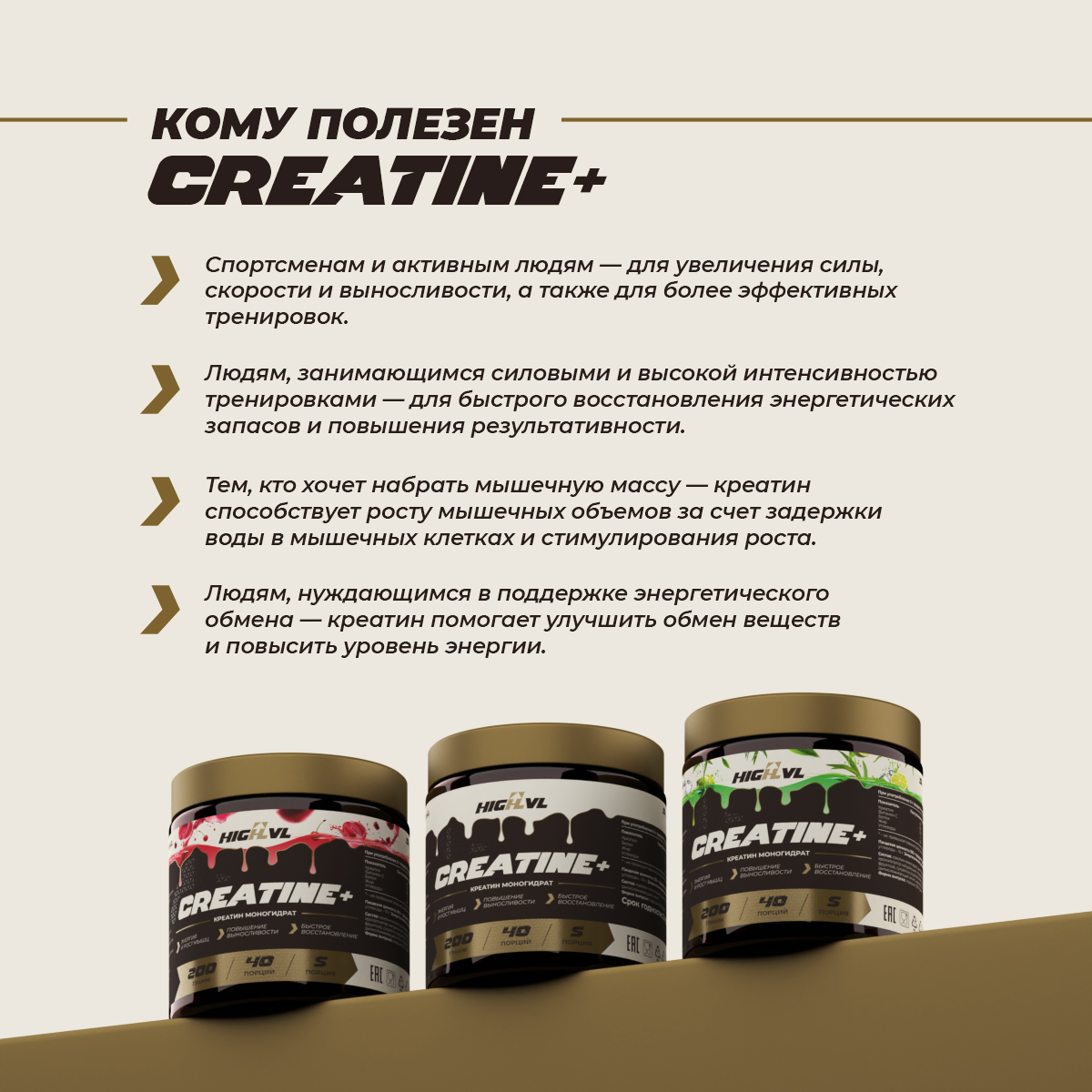 Креатин – это незаменимое натуральное природное вещество, которое содержится в мышечной и нервной ткани человека и требуется для энергетического обмена, мышечного движения и человеческого существования. Дефицит креатина ассоциируется с проявлением физических и умственных расстройств.