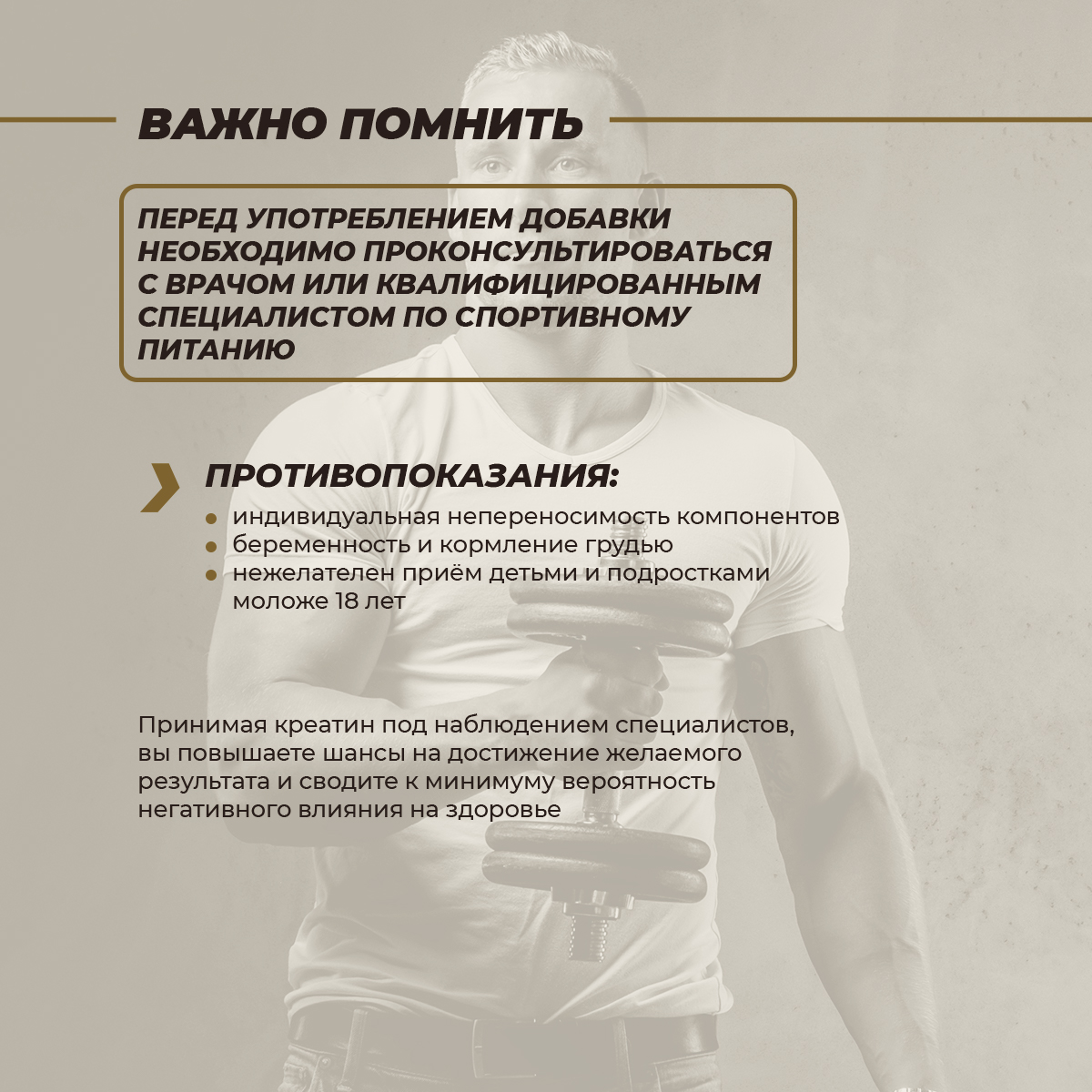 Креатин так же полезен людям с заболеваниями костно-мышечной системы, сахарным диабетом, повреждениями спинного мозга, после спортивной травмы.
